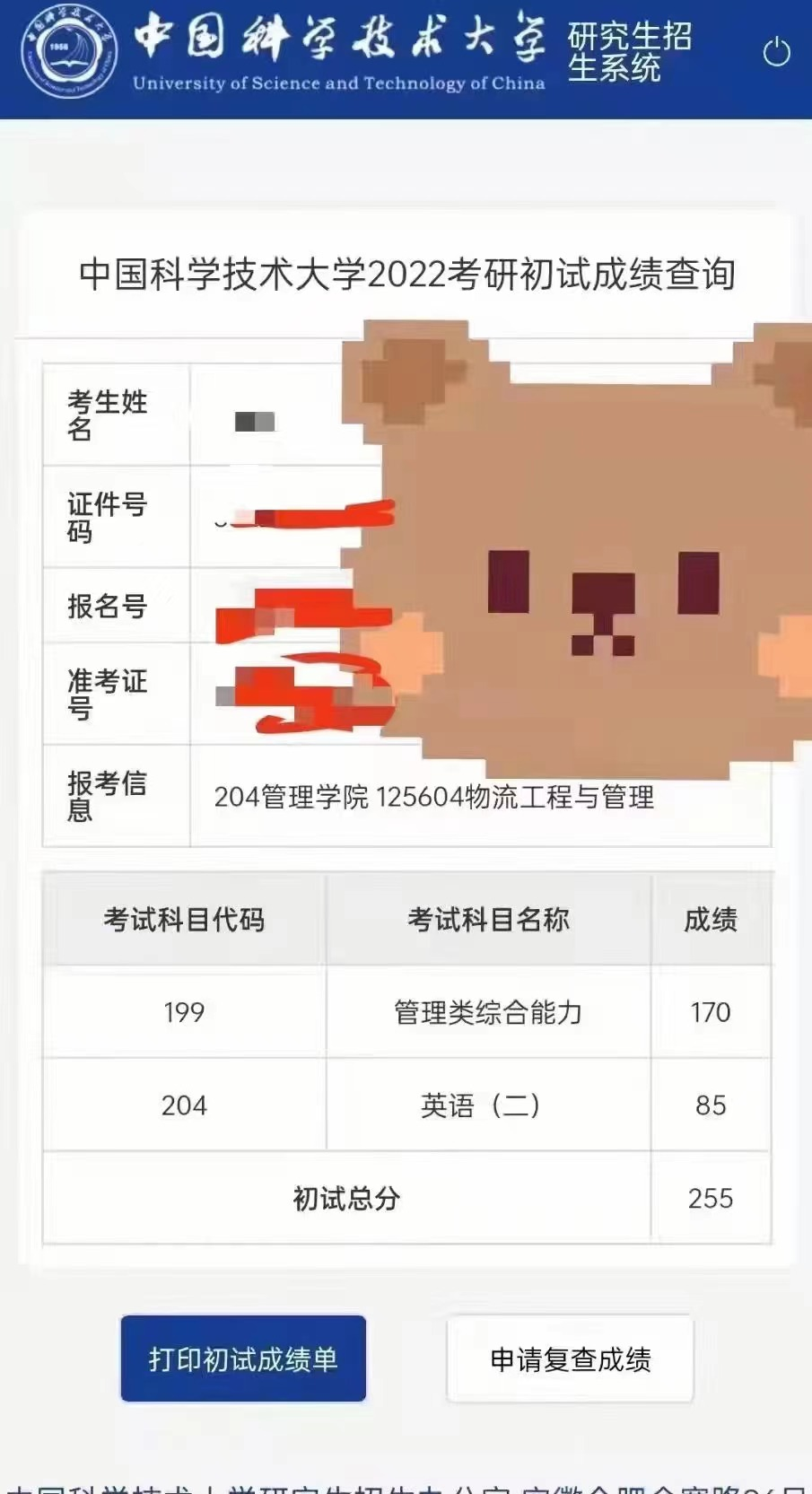 万一不小心人品爆发过了自己心仪学校的初试先,自己没去在意或者没有尽早准备错过了复试,那就得不偿失了。祝愿大家都能够考上自己心仪学校的研究生,都能够考上下面这个分数(注意,这个分数不是我的,而是我膜拜的分数)。