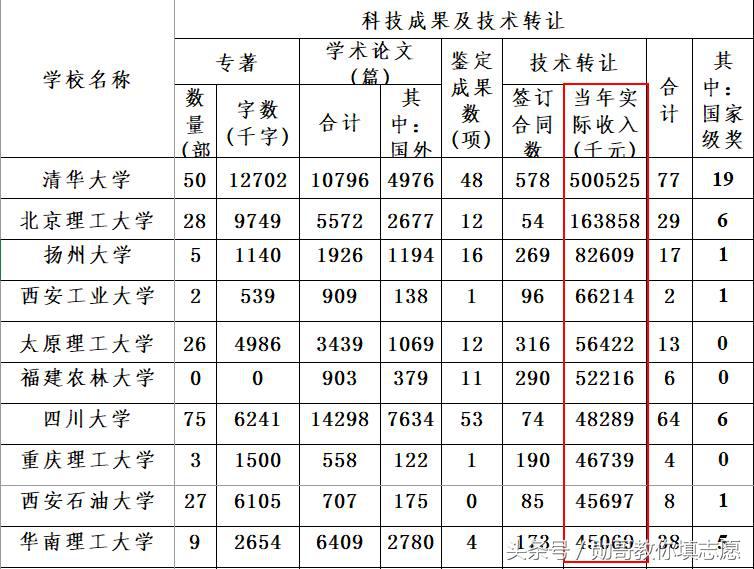 清华大学、北京理工大学和扬州大学技术转让收入位列全国前三。