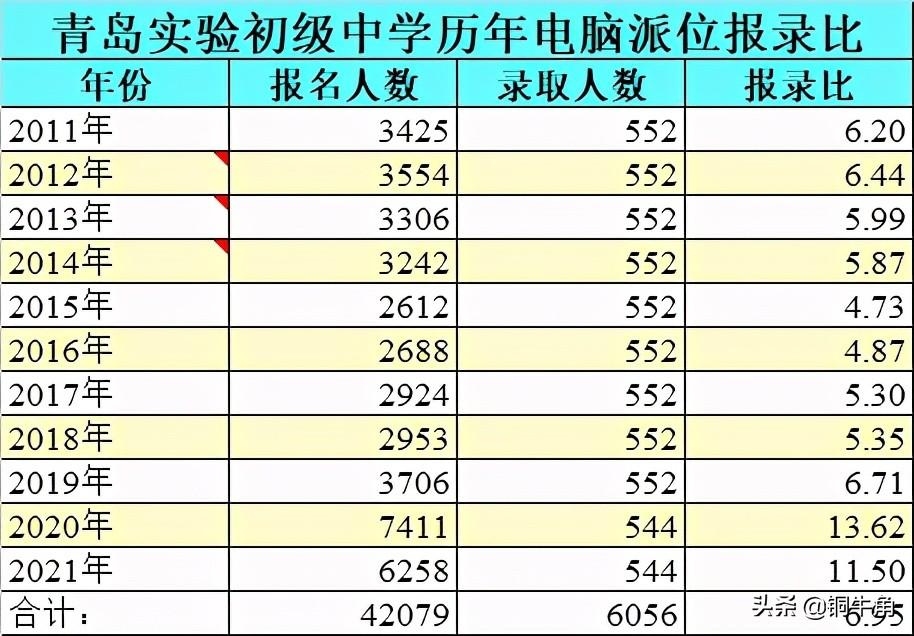 2021年报名参加青岛实验初级中学电脑派位的共有6258人,相比去年的报名人数(7411人,后改为7408人),减少了1153人,按比例算是15.56%。其中: