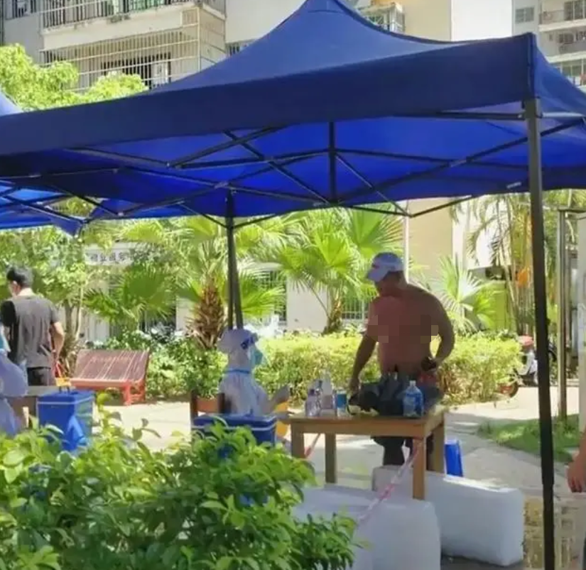 海南疫情情况引人关注,一男子却在做核检的时候违反了规定,据画面显示,他光着上半身,穿着短裤,在他把手中的瓶子放到桌上时,受到了阻拦。