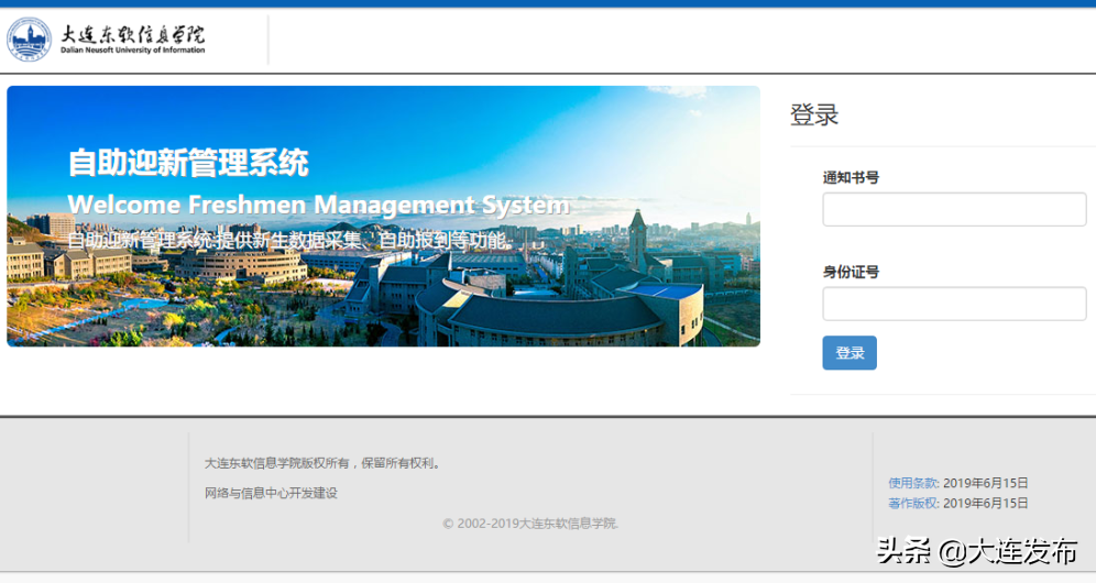 自2019年开始大连东软信息学院启用自主研发的自助网上报到系统。学生被录取后,在家可以完成个人信息采集、财务缴费、自选床位、校园网开户等程序,报到日当天打印流程单后可直接入住寝室。