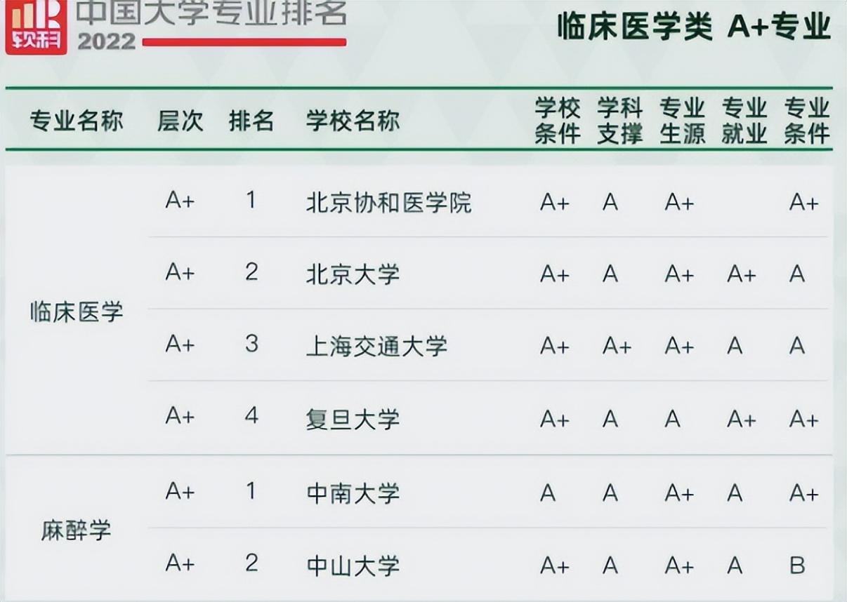 因此一般情况下如果是想要学医的学生报志愿时,正常应该先看自己想要报考的方向,在哪几所学校的学科判定综合是A以上,以此判断目标专业在这些院校是否强势。