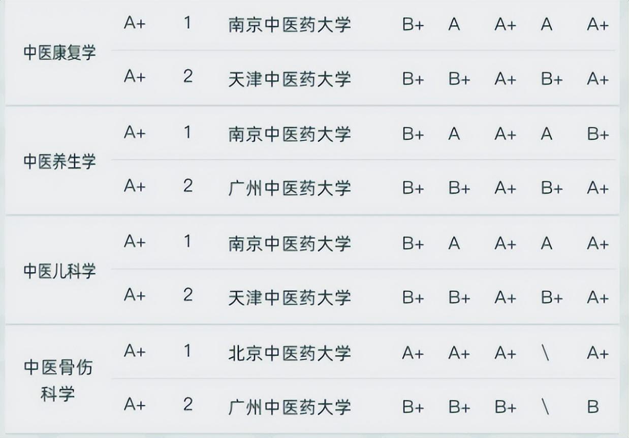 如果不是对中医类大学有了解,可能都不会注意到这些被列为A的学校,因此家长们在报考医学类大学时,千万不要因为学校排名表在前就认为毕业后吃香,医学最看的还是业内口碑。