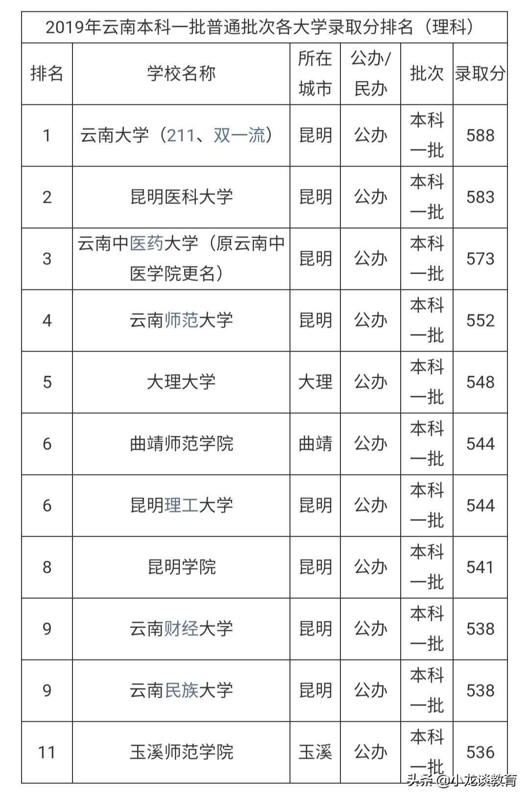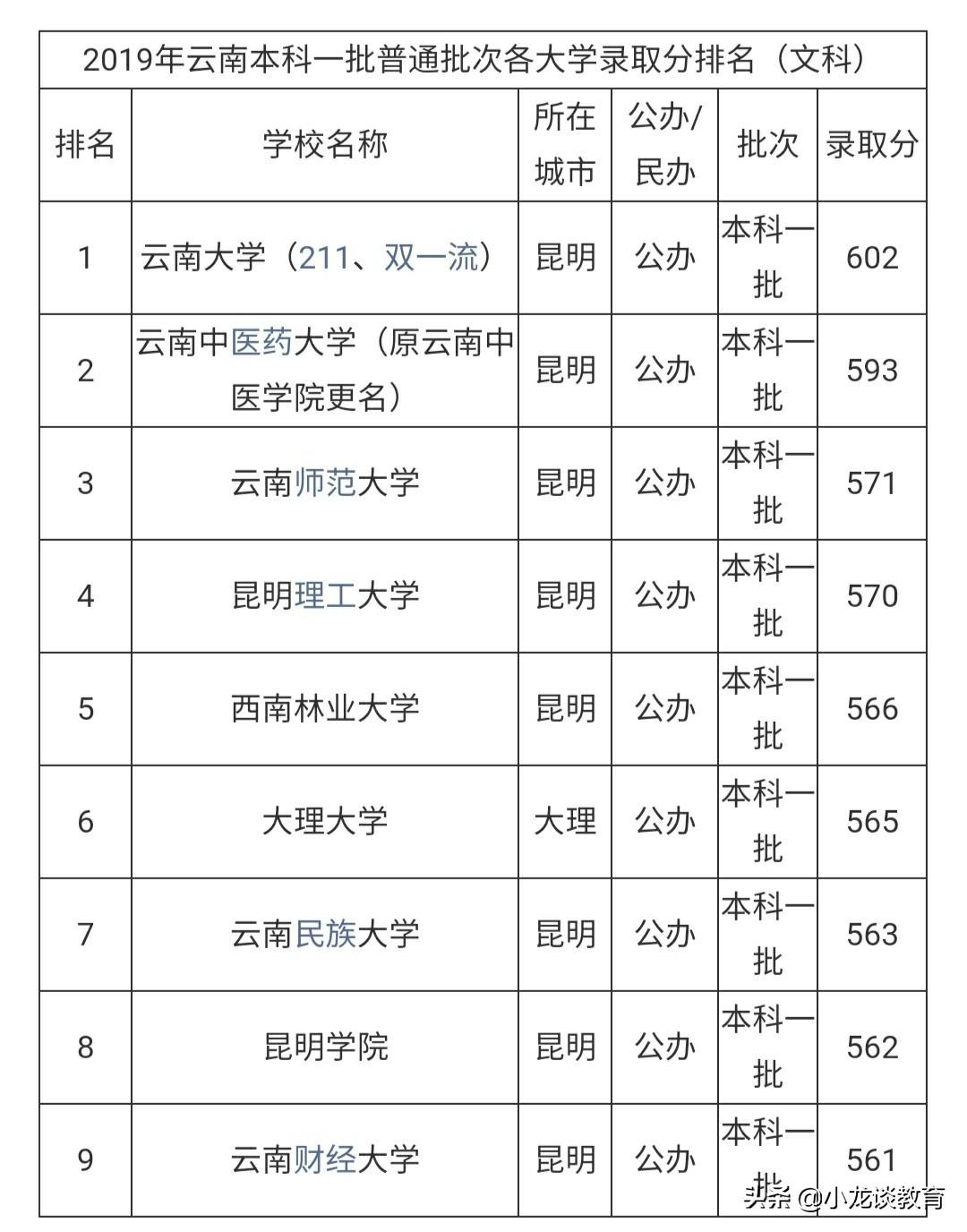 说明:部分院校在一二本批次都有招生。19年云南理科一本控制线为535分,文科一本控制线为560分。