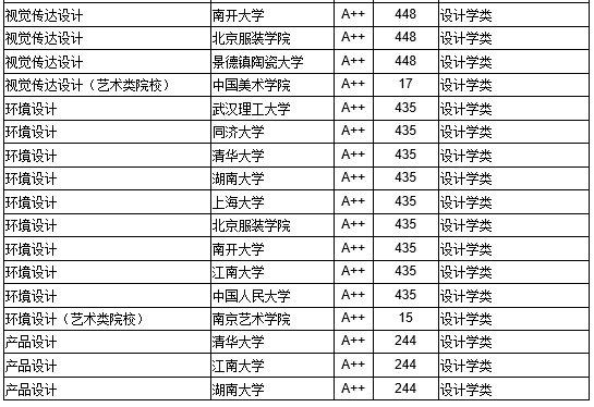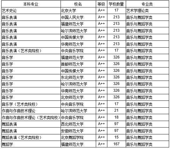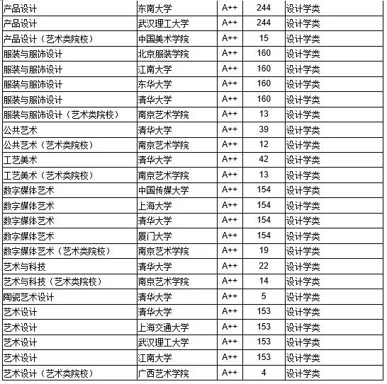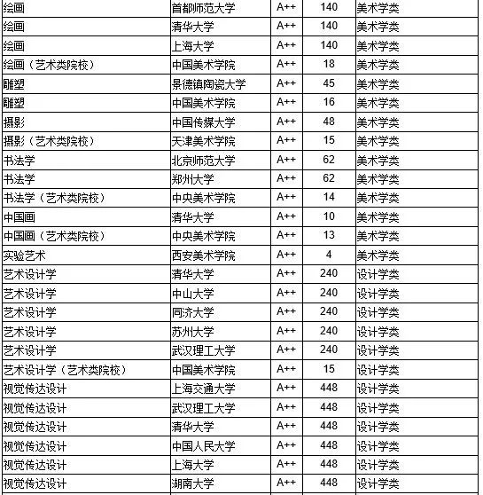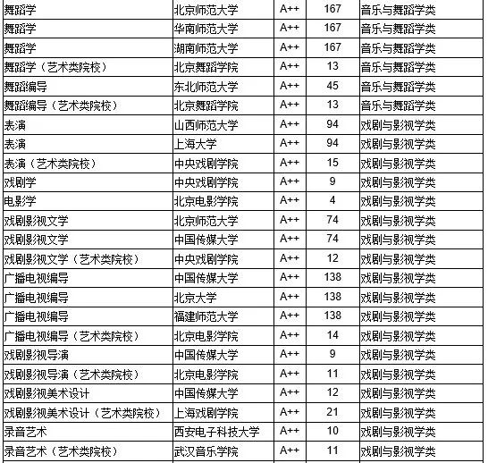 (其中部分专业艺术类院校与非艺术类院校分别排名)