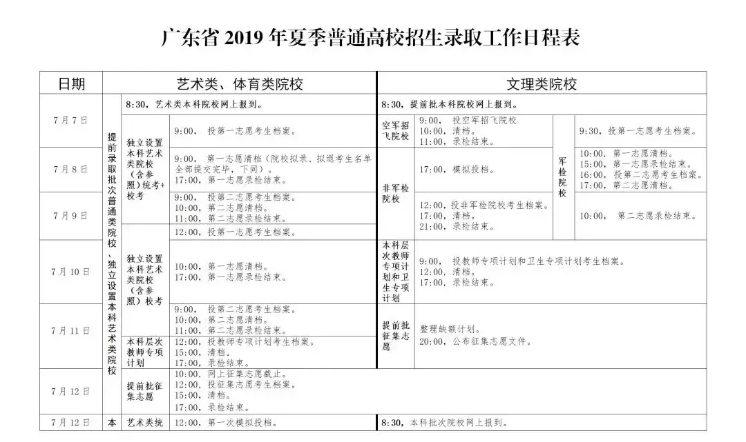 1、录取时间:7月7日到7月12日