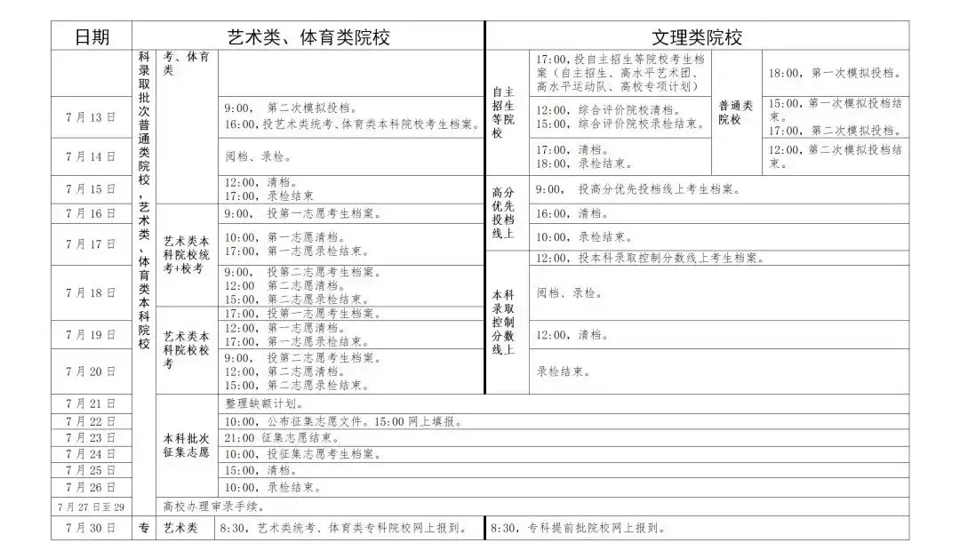 1、录取时间:7月13日到7月31日