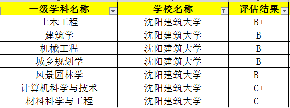 以下是沈阳建筑大学在教育部2017年公布的第四轮学科评估结果: