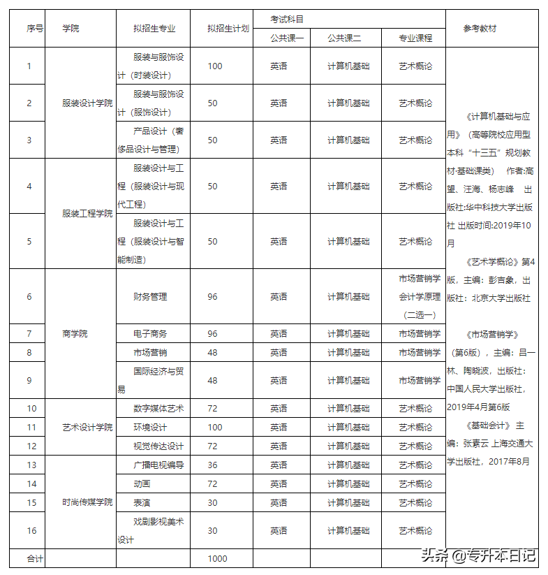 关于公布江西服装学院2020年专升本招生专业及考试科目的通知