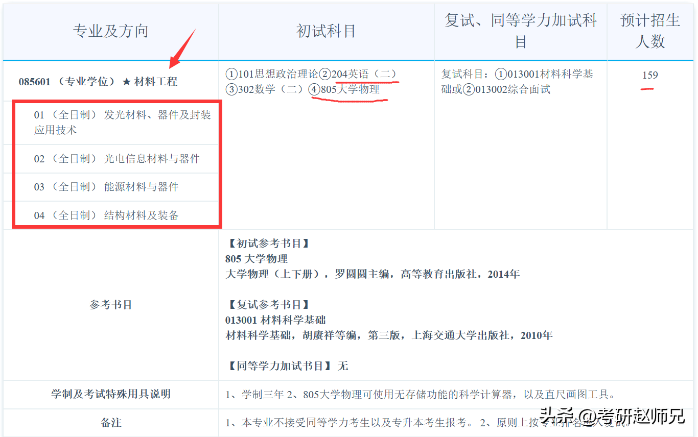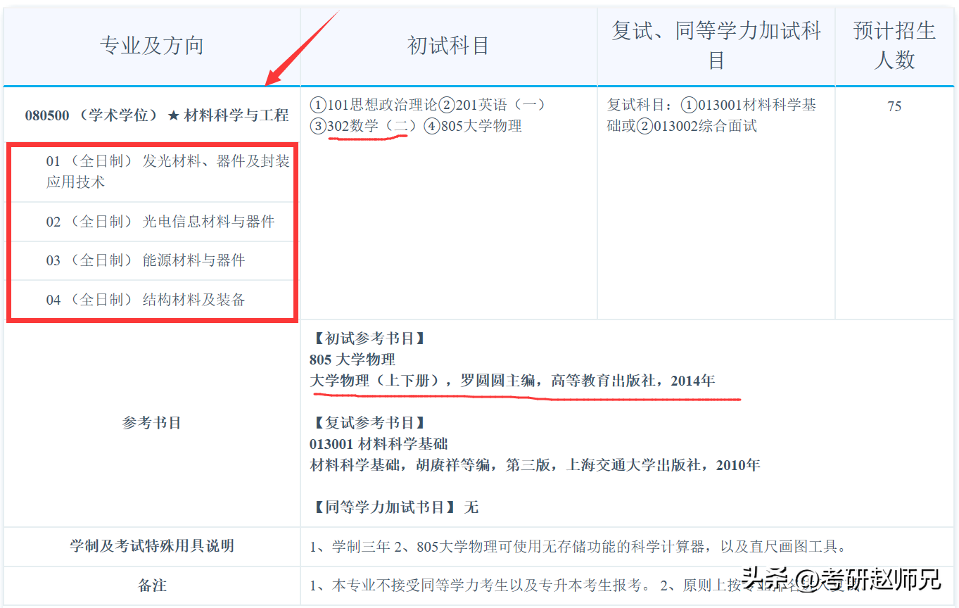 那考研首先分析的是世界一流学科:材料科学与工程,这个专业我们在前面的安徽大学大学中有分析过,他也是世界一流学科,具体的可以到前面文章查看哦。材料科学与工程这儿只材料科学与工程学院的信息哦,包含学硕和专硕学硕23考研的招生简章公布很详细,4个研究方向,计划招生75人,具体看最后复试人数,参考书也标注出来了,同时805专业课考试允许带计算器和画图工具。
