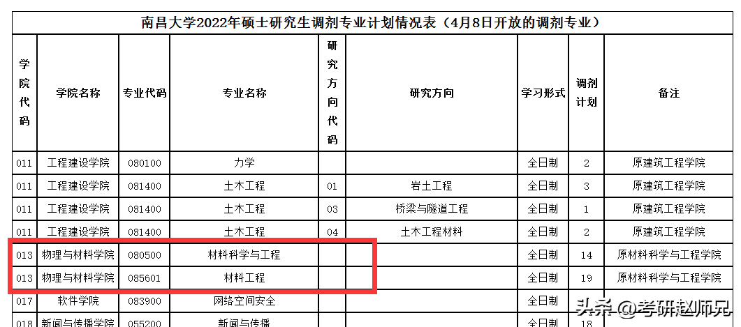 学硕和专硕的分数相差不大,不像其他学校学硕和专硕录取分数差距多达50分左右,所以如果选择南昌大学的材料专业,学硕和专硕的选择就很好则断,看研究方向和自生英语基础即可。那性价比专业推荐,首先先看一下去年的调剂信息,南昌大学的调剂信息还是很多的去年有不少专业需要调剂,特别是医学类专业,但是医学专业调剂要求很多,如果同学们想去了解可以到官网去查看,只要有调剂的专业,一志愿报考正常达到要求就没有啥问题,医学专业具体要求比较多,这儿不一一开展介绍。