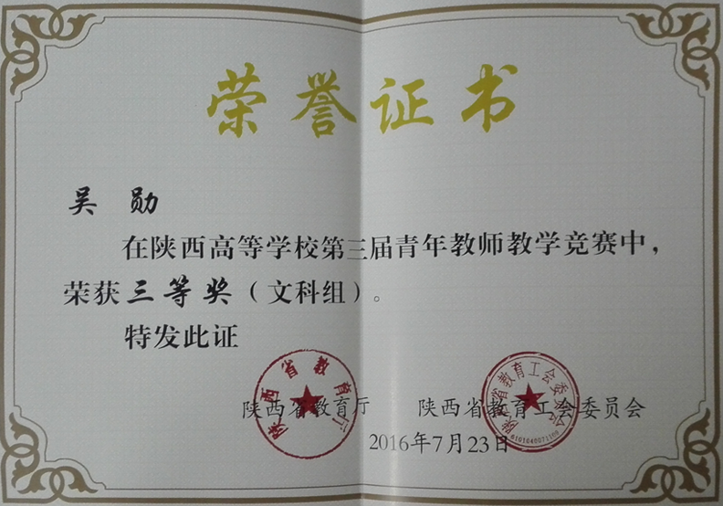 从左至右为:赵选民(陕西省教学名师)、李志学(西安石油大学教学名师)、吴勋(入选陕西省普通高校青年杰出人才支持计划)