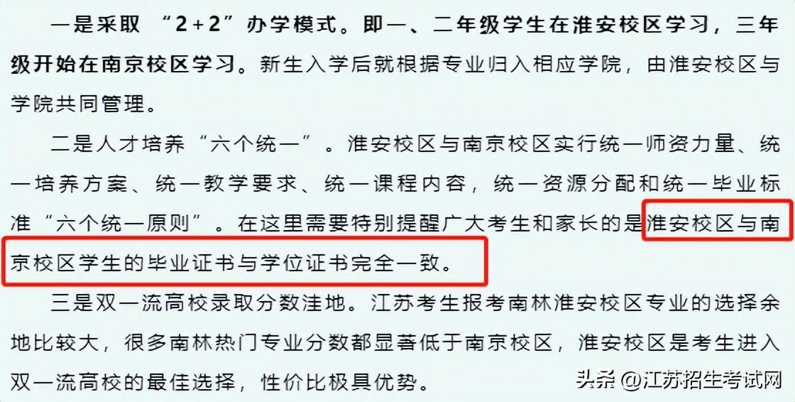 总体来说,相同专业淮安校区比南京校区低15分左右,而且淮安校区的招生计划也相对较多,但是有部分专业仅南京校区有。