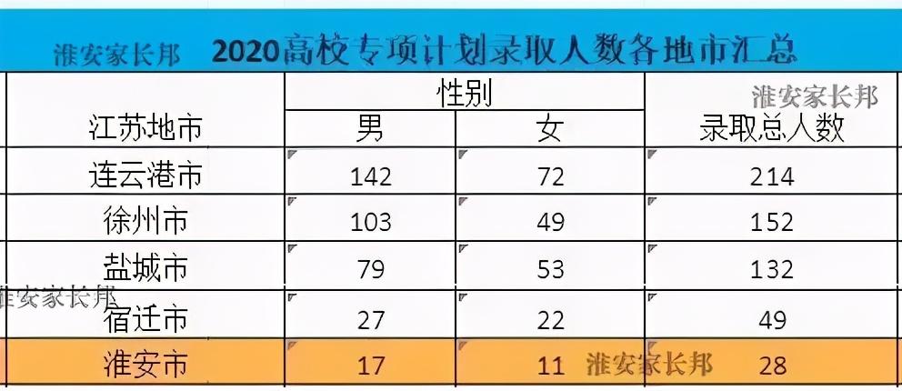 如果这个数据还不够全面,我们再看下高校专项和地方专项,这是专门针对落后地区的高校录取计划,大部分是苏北各县区;