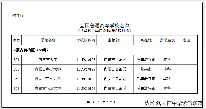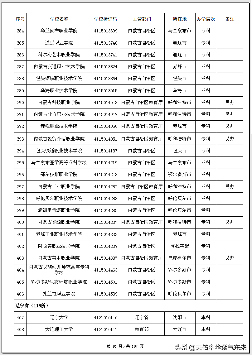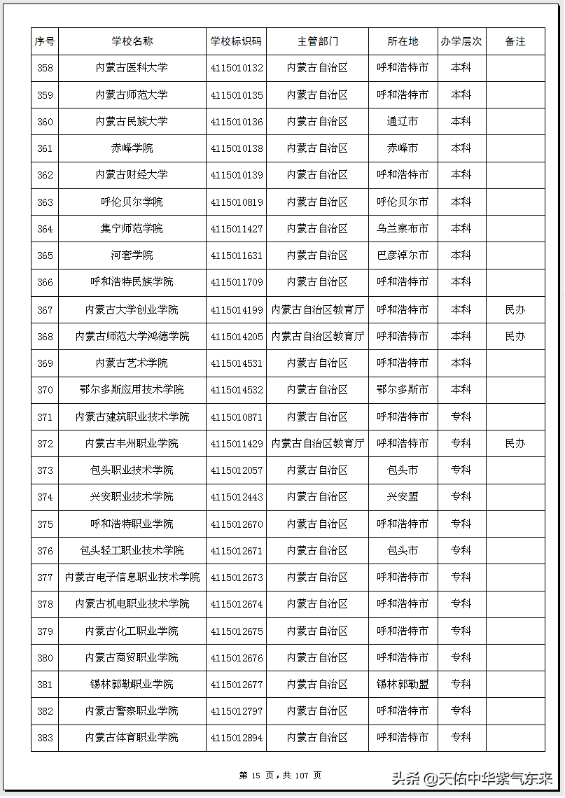内蒙古普通高等学校(大学)名单