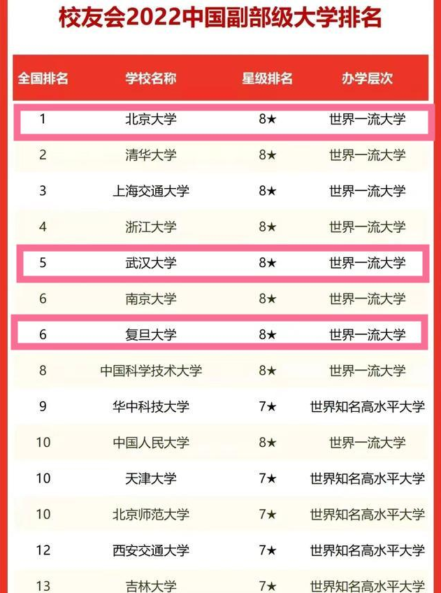 国内副部级大学排名大换血,清华不敌北大排第二,武大表现很抢眼