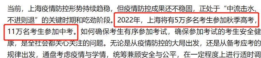 同时,上海市副市长、市教委主任王平介绍,今年全市将有5万多名考生参加秋季高考,11万名考生参加中考。