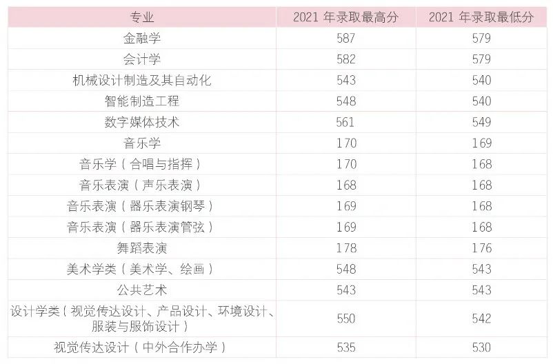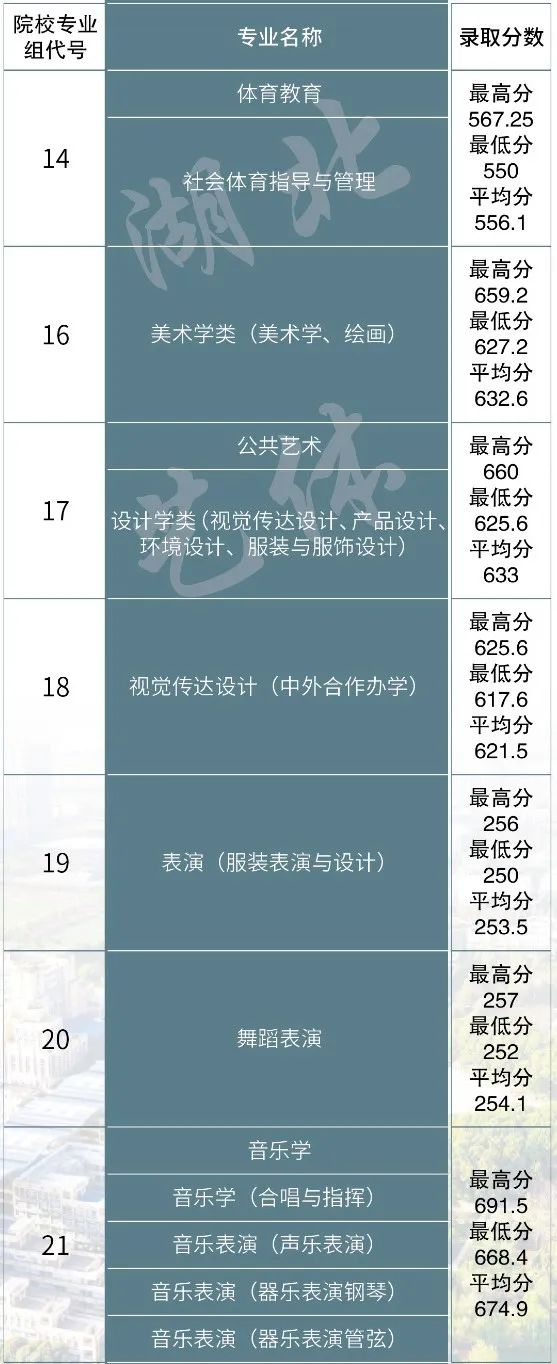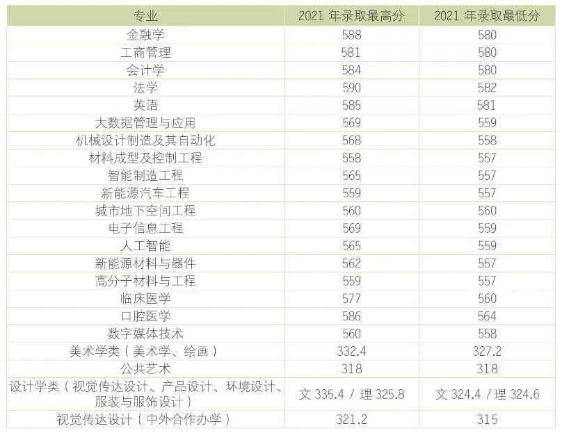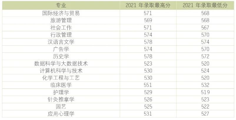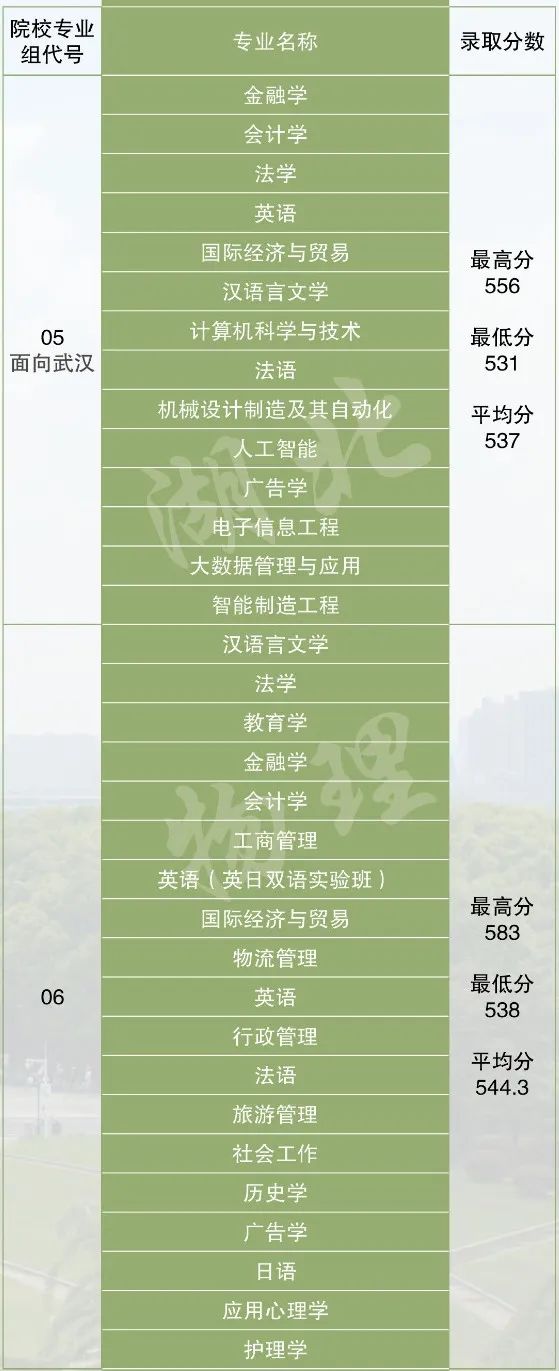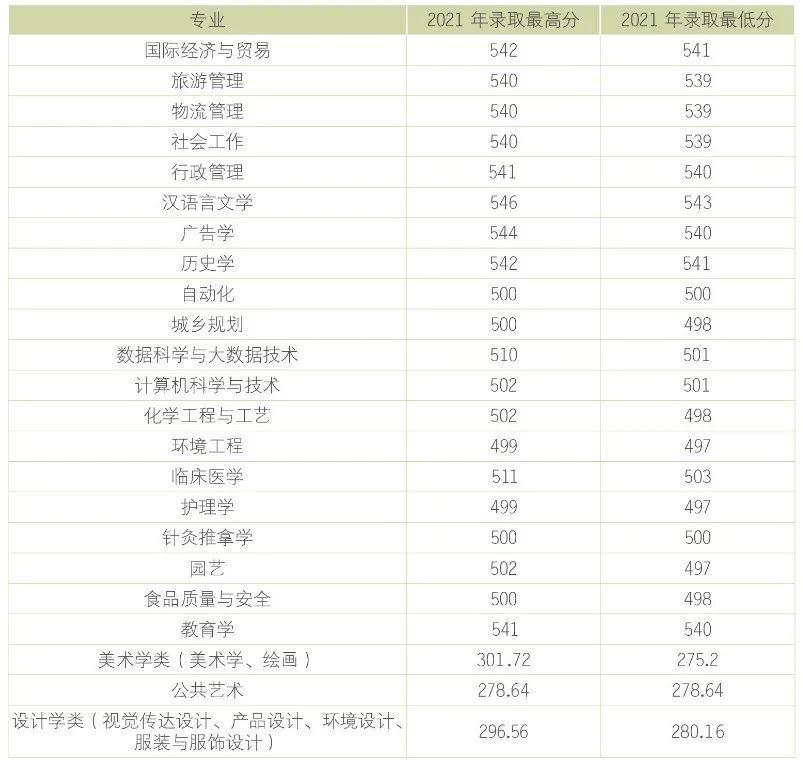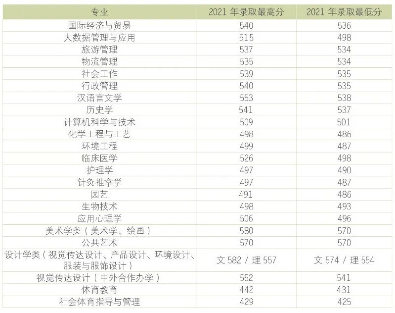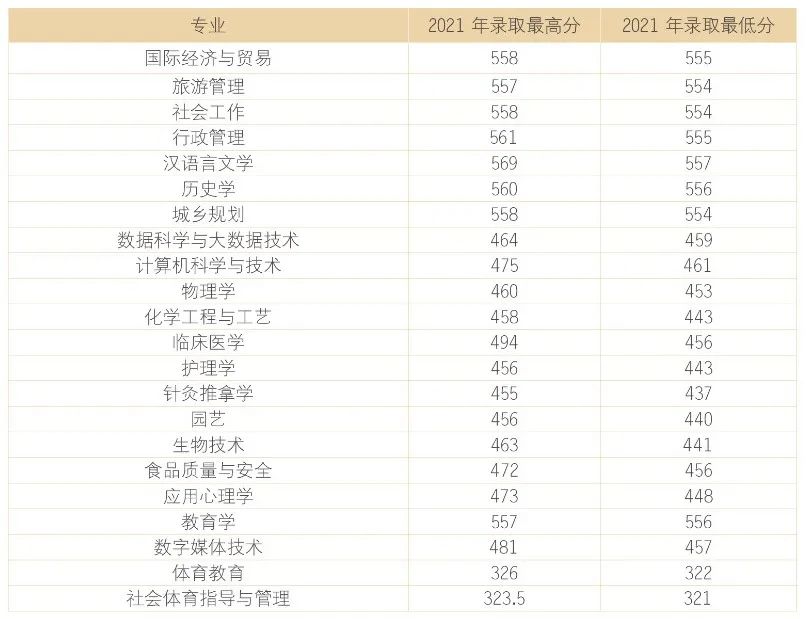 2021年,学校普通文理类在全国各省的投档线,高于特殊类型控制线(或一本线)的比例为93.44%,其中湖北省各专业组投档线均高于特殊类型控制线,位列省属高校第5名,综合实力在同类高校中名列前茅。
