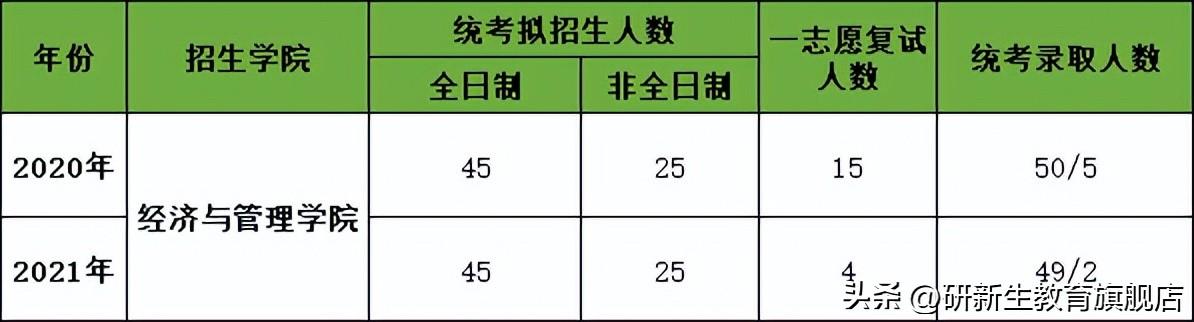 2021年复试分数线:338/46/69;进入一志愿复试4人,全日制和非全日制各2人。其中全日制初试分数:341分(退役士兵)、353分;非全日制初试分数:383分、353分。