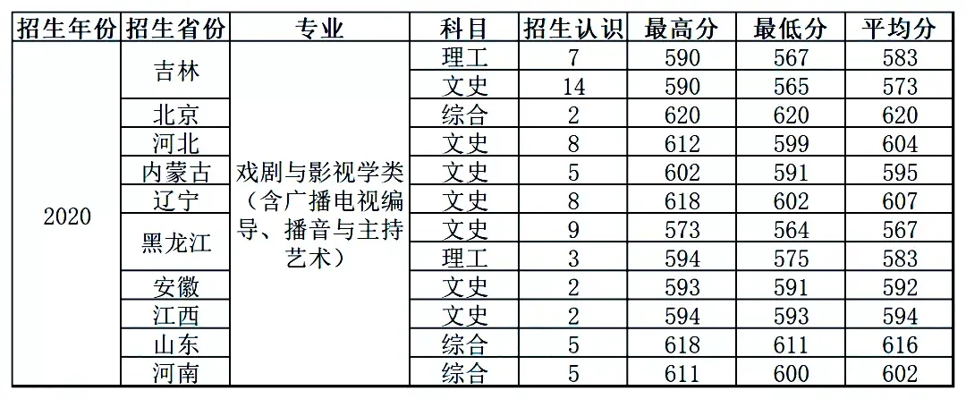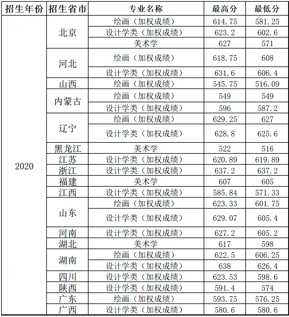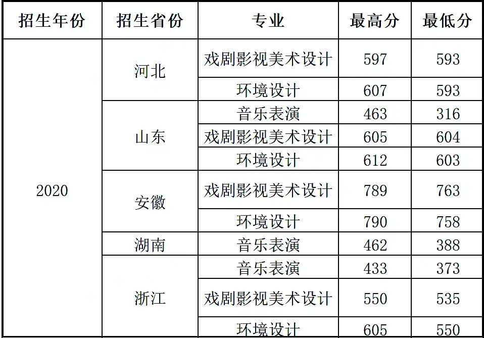 快来看看你的分数能上哪些院校?热门艺术类院校2020专业及文化录取线整理!