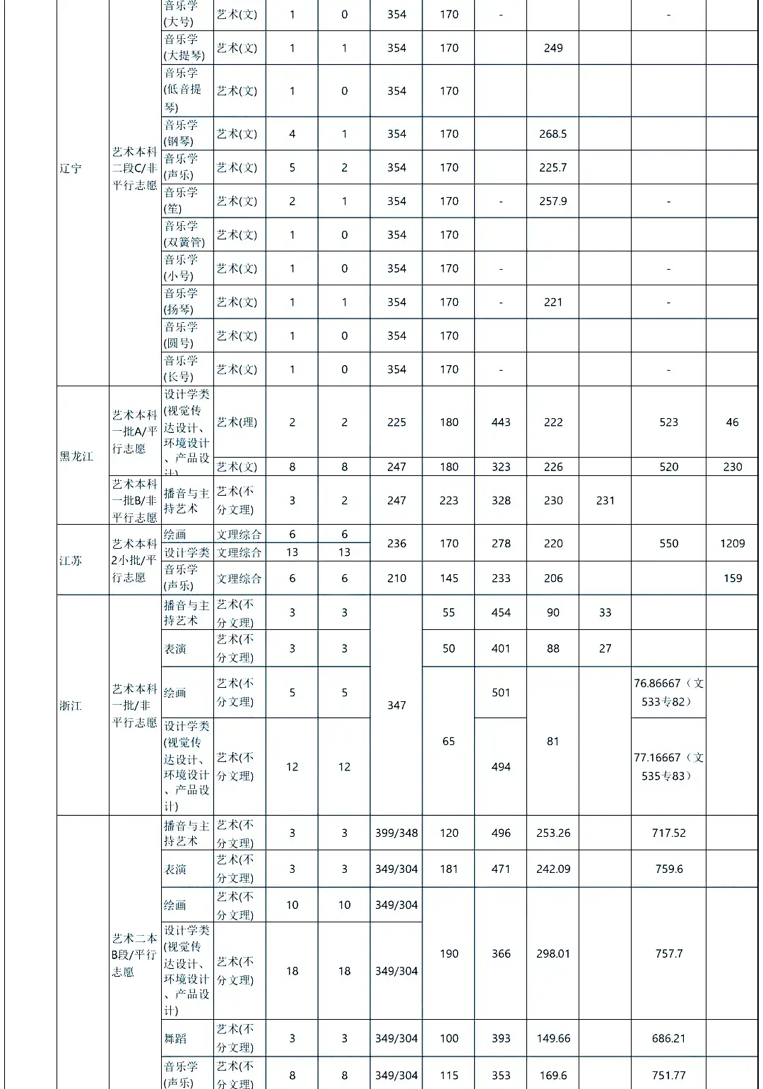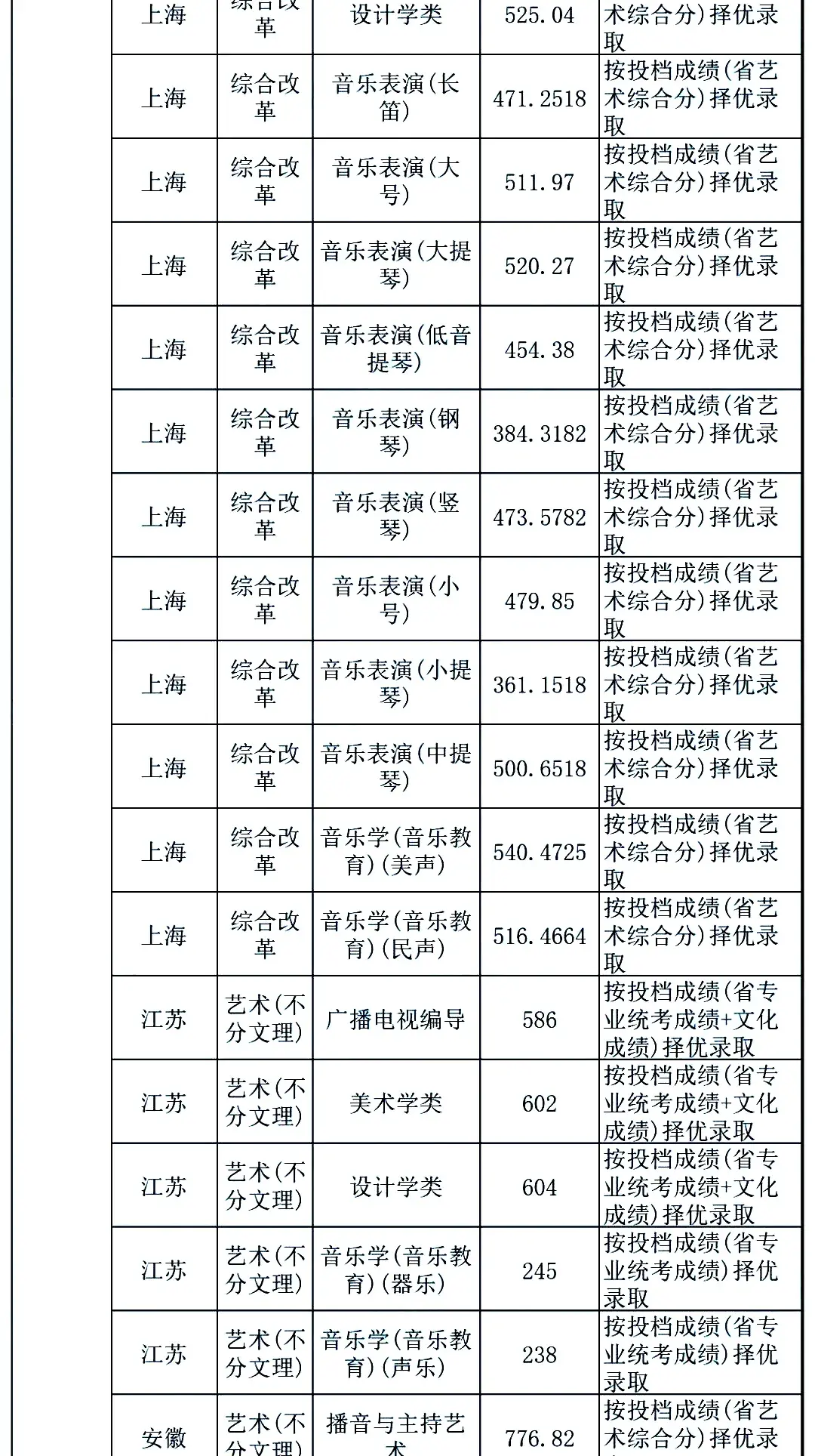 各省2020年艺术类各批次录取控制线!各省2021年录取线要求!
