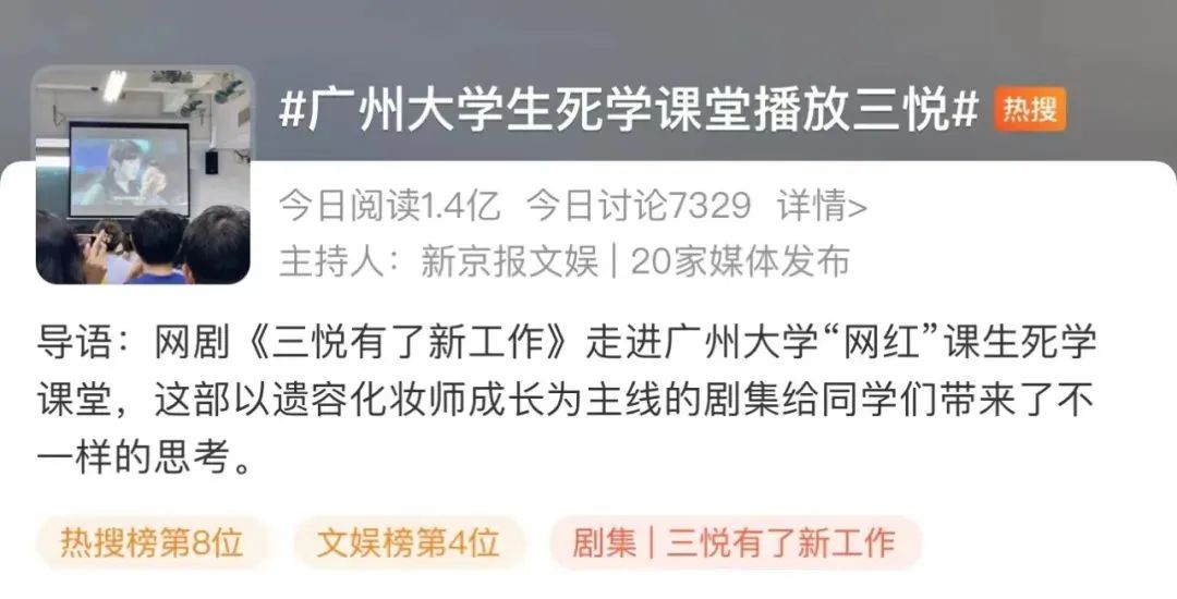 《三悦有了新工作》中,就通过女主赵三悦(周依然 饰演),全面为观众展示了真实殡葬业的样子。