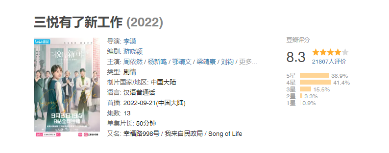 而这部电视剧,就是近期热播的《三悦有了新工作》。