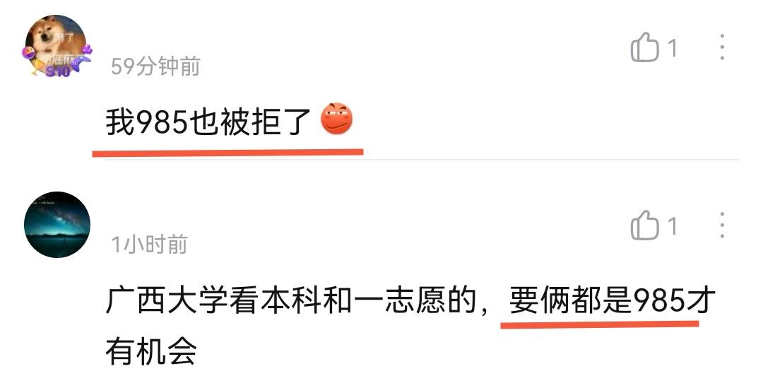 然后,看到有一位考生这样说:“我985大学也被拒了”。