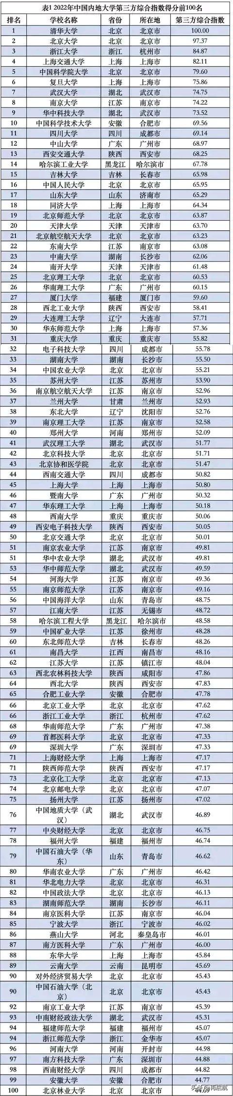 中国内地高校,2022年的第三方综合评价排名,100强榜单新鲜出炉,此榜单冷门频出,不少名校的排名,争议不断。这份排名,到底有多冷门,多离谱?一起来看看,具体的情况。