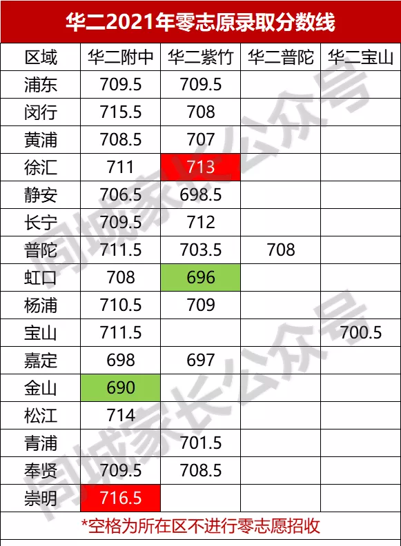 由于华二附中本部以及华二紫竹不进行1-15平行志愿招生,所以没有分数线。华二普陀、华二宝山仅在本区招生,所以只有本区的分数线。
