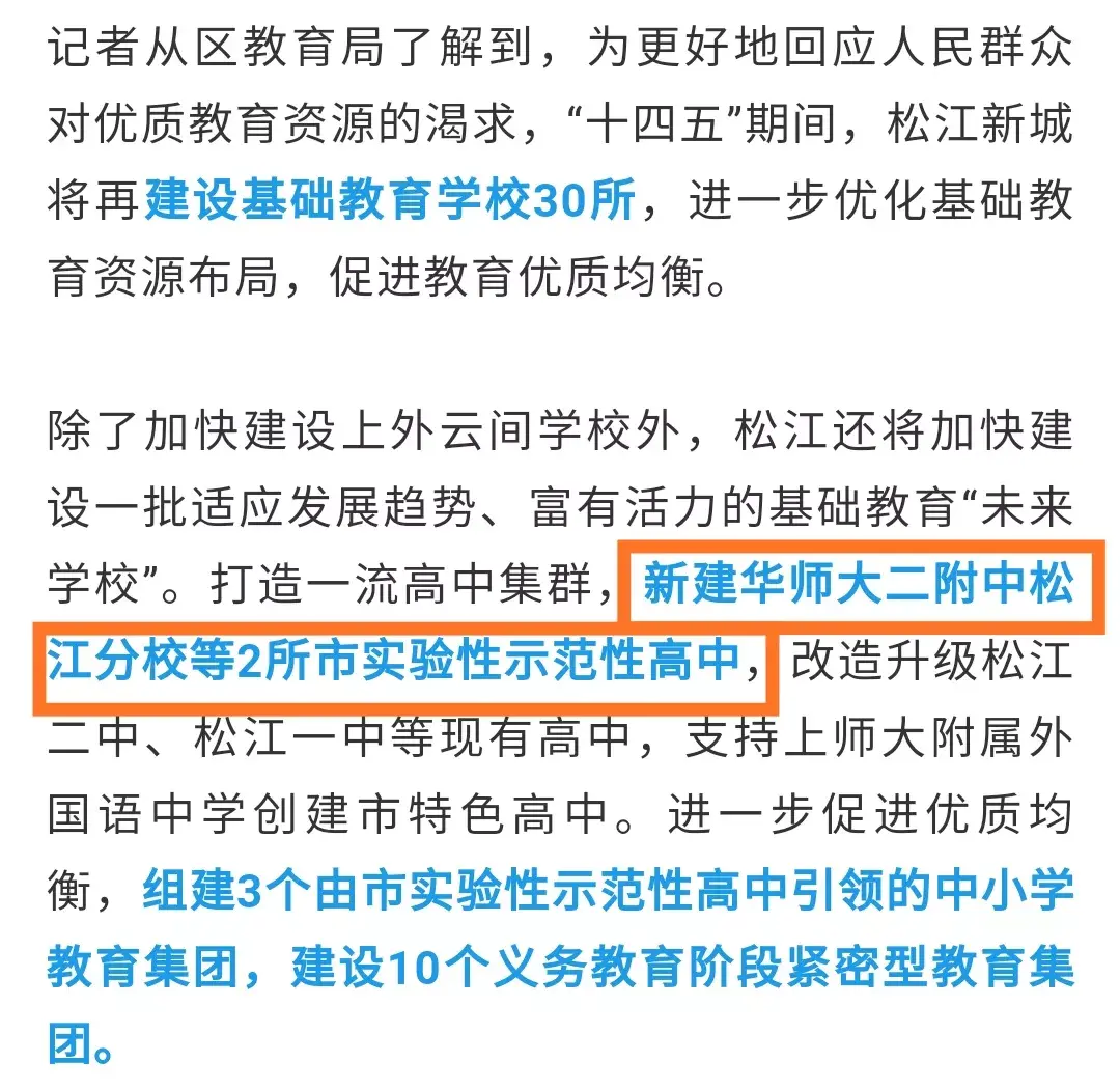 6月22日,“上海松江”发文宣布:松江将打造一流高中集群,新建华师大二附中松江分校等2所市实验性示范性高中!