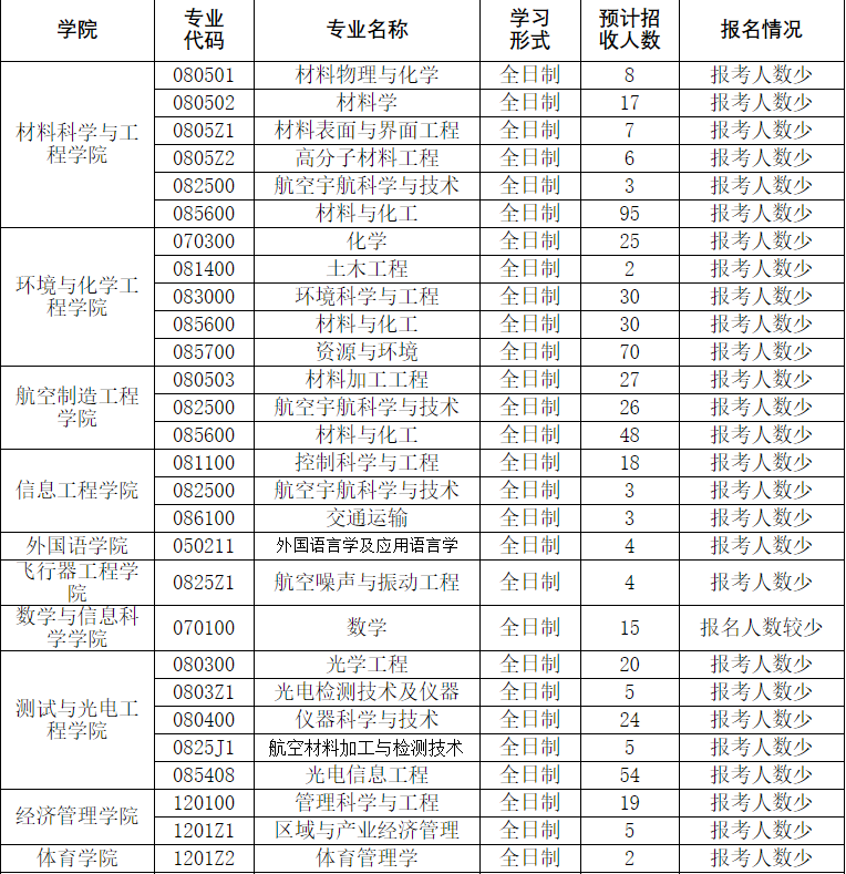 全日制:自动化科学与电气工程学院的控制科学与工程(408人报考)、电子信息(372人报考)电子信息工程学院的电子信息(403人报考)计算机学院的计算机科学与技术(299人报考)和电子信息(285人报考)材料科学与工程学院的材料科学与工程(307人报考)和材料工程(323人报考)机械工程及自动化学院:机械工程(307人报考)外国语学院英语笔译(248人报考)