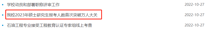 据长江大学官方媒体发布的消息获悉,在2023年全国硕士研究生招生考试报名截止日——2022年10月26日,长江大学报名人数,首次突破10000人大关。
