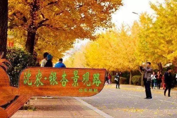 辽宁农业大学的银杏路长达1430米,是沈阳最长的银杏路。这条银杏路上,栽植340棵银杏树,一眼望去,满目金黄。