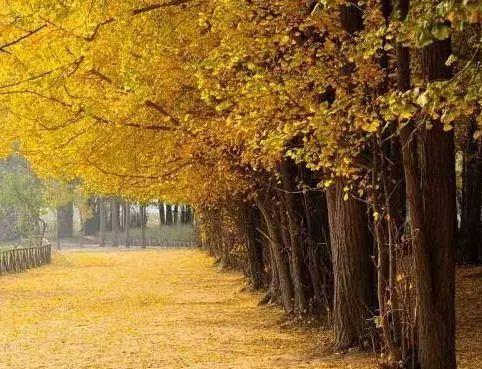 沈阳师范大学具有“最美银杏地图”之称,这里的银杏种类多,种植面积广,蜿蜒的小路两侧就是嫩黄的银杏树。