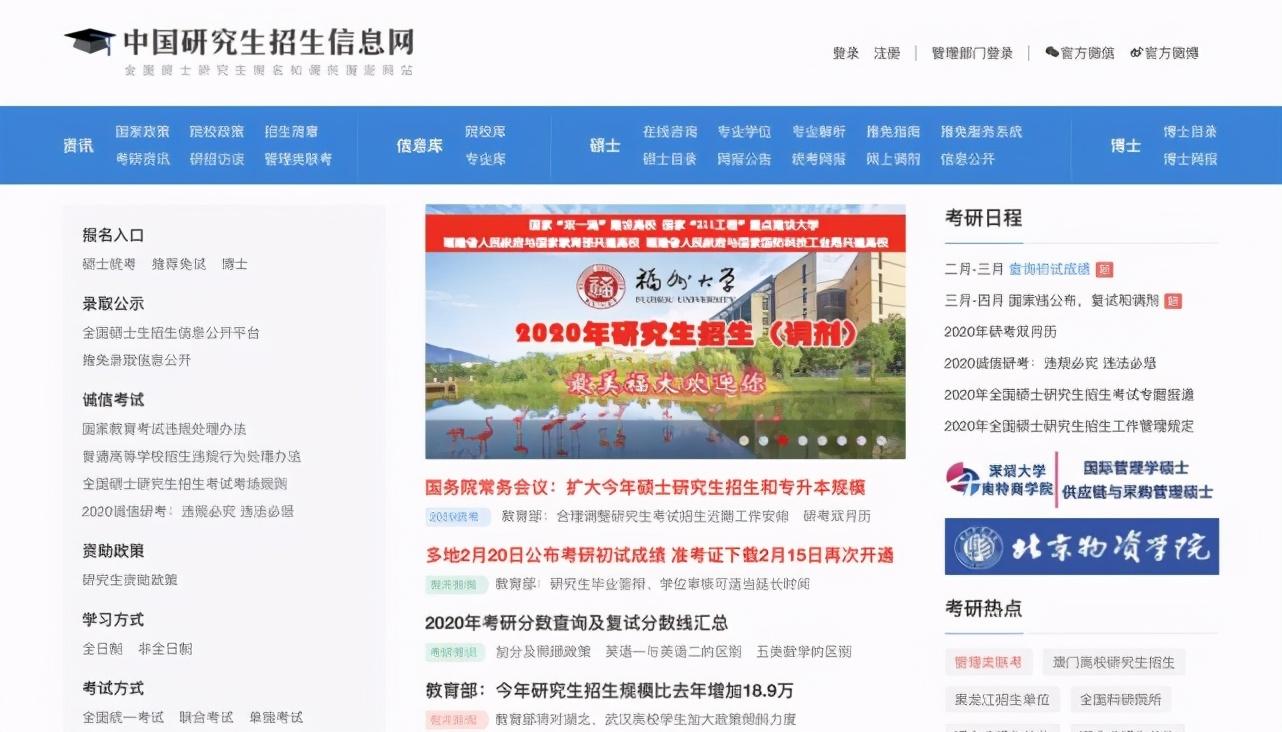 1.学校的研究生院官网同学们需要勤浏览学校的研究生院官网,专业有缺额的时候一般会第一时间公布。这是最及时、最权威、获取最准确信息的途径。2.中国研究生招生信息网(研招网)研招网会经常公布一些院校的考研调剂信息,同学们需要经常去看看,对自己有用的专业调剂信息及时联系。