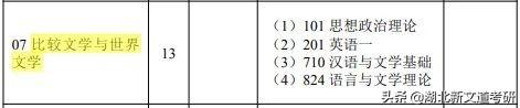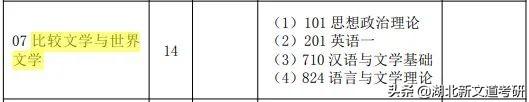 2022年华中师范大学比较文学与世界文学计划招生14人,初试科目为政治、英语一、710汉语与文学基础、824语言与文学理论。