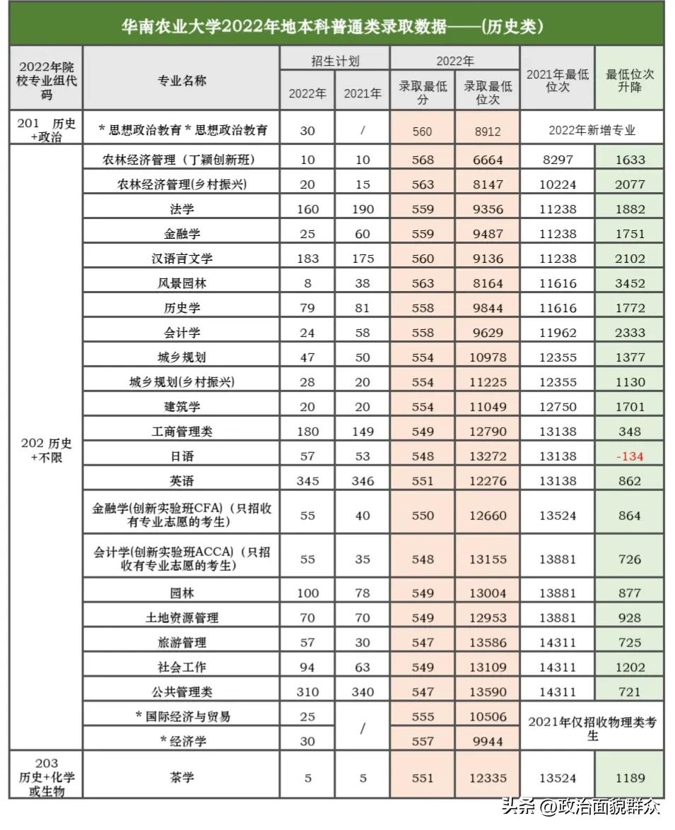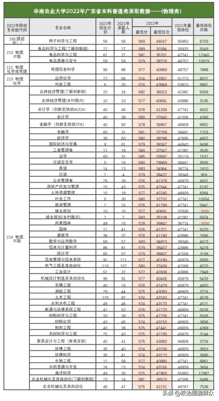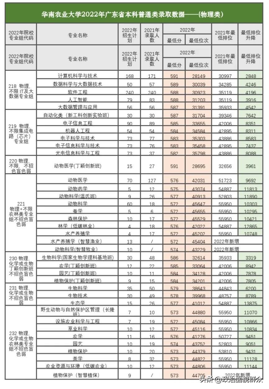 下面分享2022年华农在全国各省的录取数据,重点分享一下与上年相比,华农在广东省各专业的录取分数发生了哪些变化。
