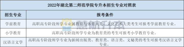 除了学前教育、小学教育和汉语言文学3个专业有明确的专业限制外,湖北第二师范学院其他专升本专业,暂未给出专业限制。