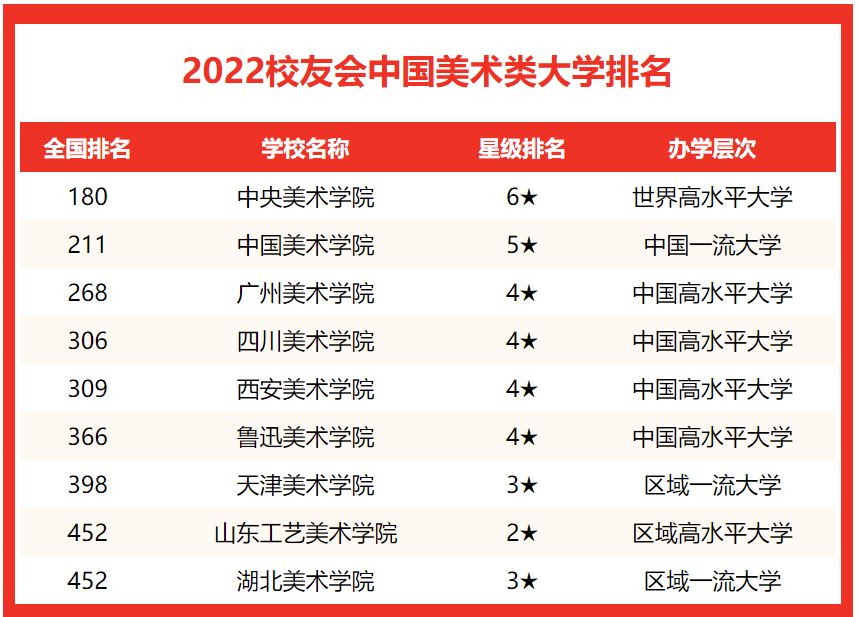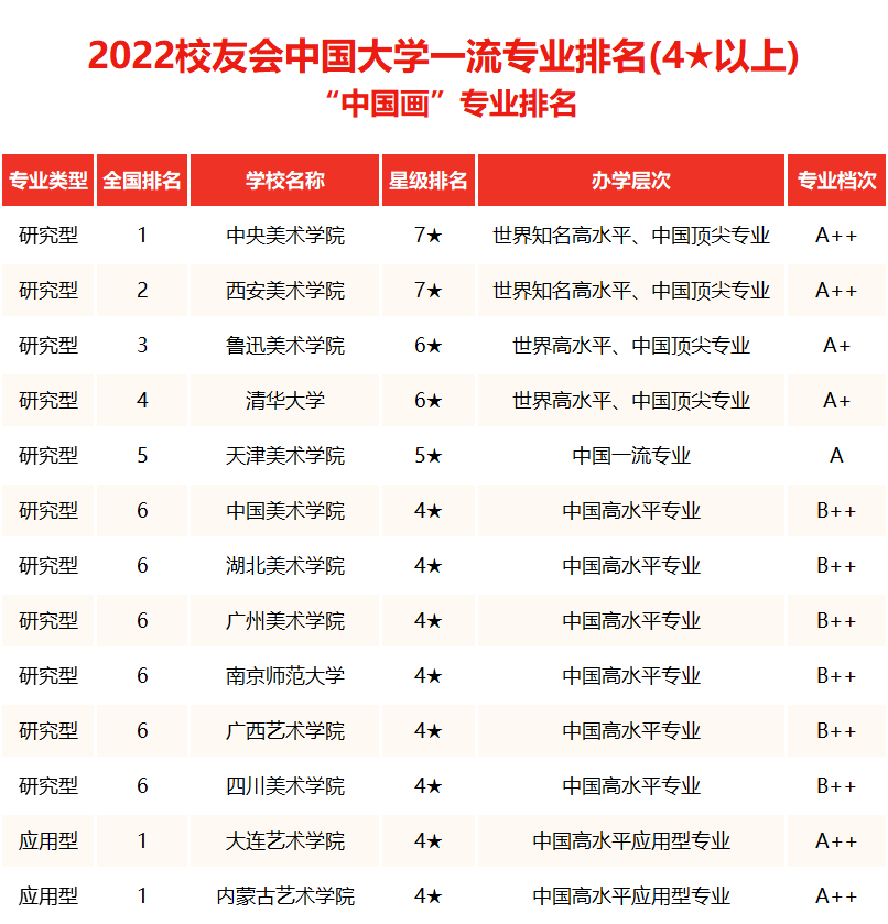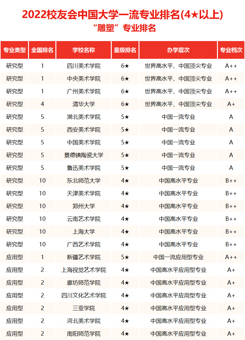 另外,校友会还将开设美术学类和设计学类一流专业的大学分别进行了排名。在雕塑、书法学、环境设计、数字媒体艺术、中国画、美术学、产品设计、艺术与科技8个专业的排名中,这些大学上榜!有你中意的学校吗?