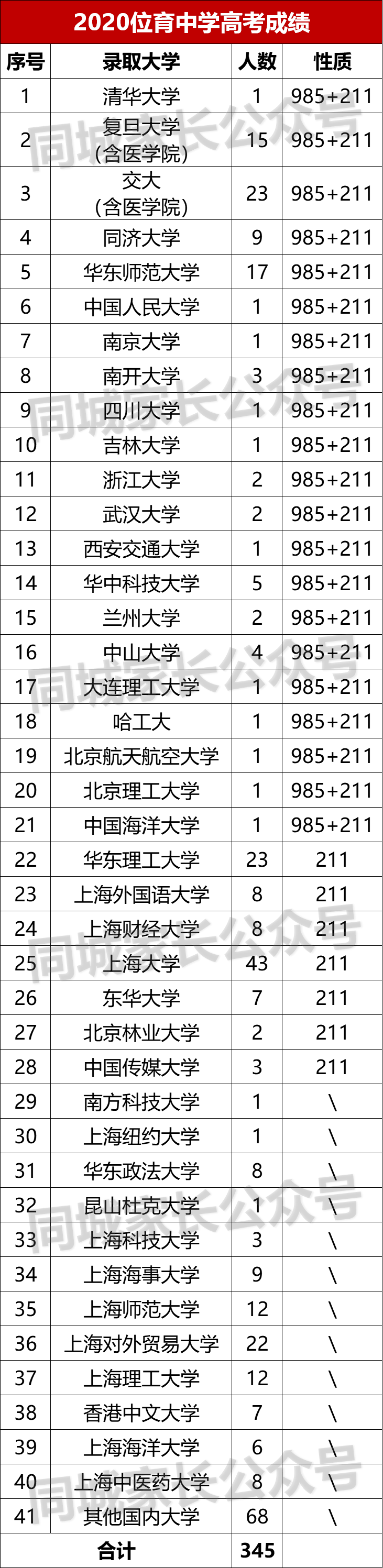 总的来说,2020届位育中学毕业生中,每两人有一人进了985/211大学或新兴名校。