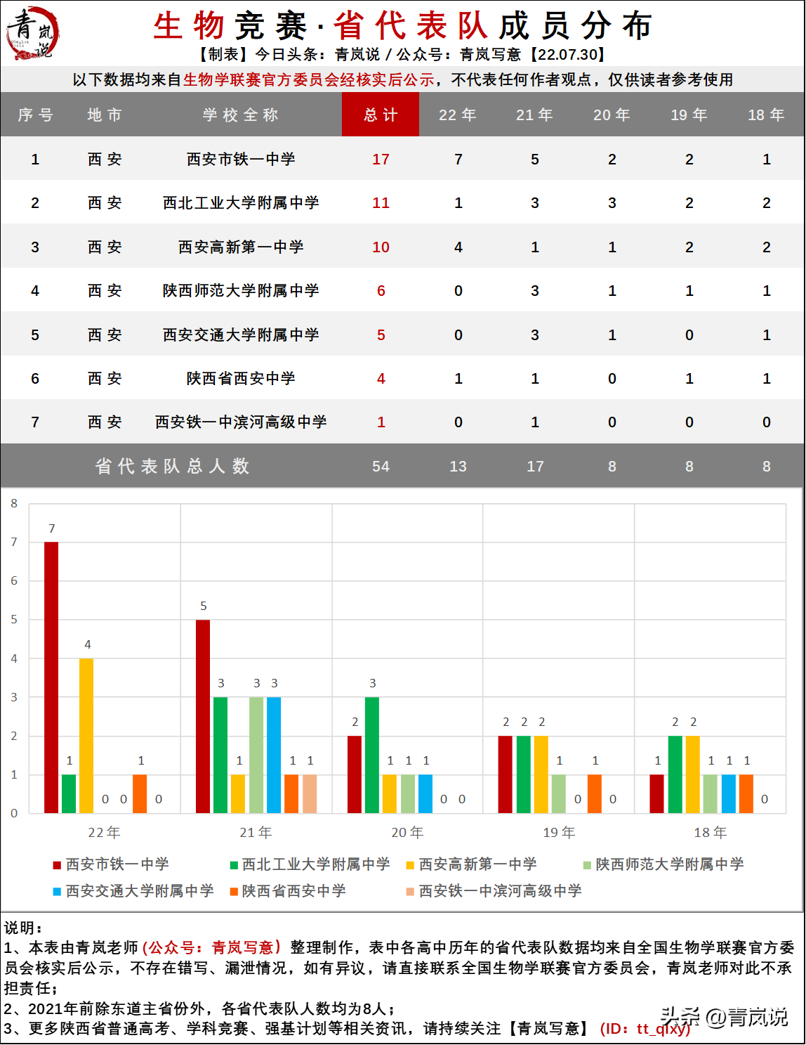 注意,表中各高中历年的省代表队数据均来自全国生物学联赛官方委员会核实后公示,不存在错写、漏写情况,如有异议,请直接联系全国生物学联赛官方委员会,青岚老师对此不承担责任。