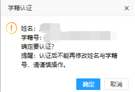 3.出现学籍认证确认窗口,点击确定按钮(如图3-2所示),跳出等待系统认证完成界面(如图3-3所示)。点击确定按钮,出现个人信息基本信息窗口,提醒系统排队认证中(如图3-4所示)。学籍会在一分钟内完成认证。