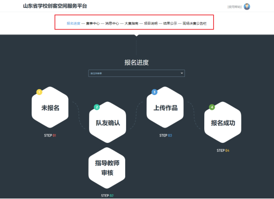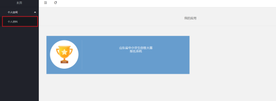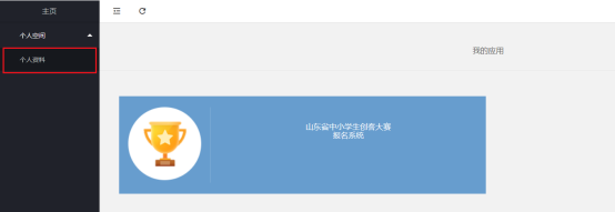 (1)学生登录个人空间后后,选择进入“山东省中小学生创客大赛报名系统”,界面如图4-1所示。
