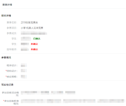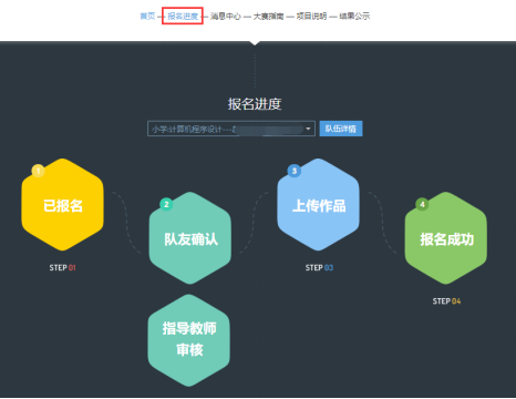 竞赛类项目报名流程基本与作品类项目报名基本一致,只是没有上传作品这个环节,组队(包括队友和指导教师都同意组队)成功即完成报名。