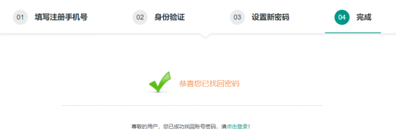 (1)如您在注册过程中发生身份证号或者手机号码已存在情况,表示您已在平台注册过,请点击首页登录按钮,通过登录界面“忘记密码”处找回密码,如图1-4所示。