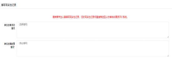 写实性记录:请参赛学生认真填写写实性记录,您的写实性记录将直接推送至山东省综合素质评价系统。