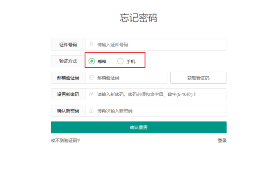 (2)找回密码,可以通过填写注册时填写的证件号码或邮箱或手机号码进行找回,如图1-5所示。