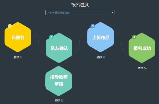 当学生报名成功后(作品类提交作品后,竞赛类组队完成后,中职组提交作品后),系统自动发送包含报名信息的系统消息给所有组队成员,告知其已报名成功。指导教师 每解散队伍,系统自动提醒所有组队成员,标明参赛成员、项目类型、作品名称等,告知其参赛队伍已被指导教师***解散。当没有收到报名成功系统消息时,需要去报名进度界面核实报名状态,及时完成报名。