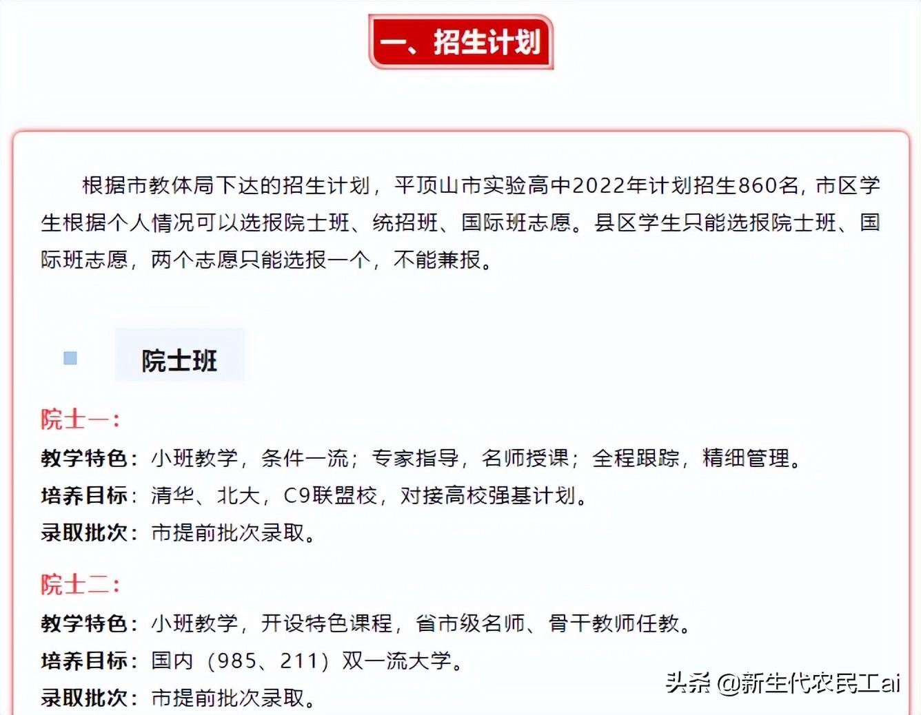 院士一班、院士二班是实验高中最好的班,预计录取分数470+。2021年录取到604分,比市一中、鲁山一高正录的分数低,从这个角度看如果能够考上市一中或者鲁山一高,就能上实验高中院士班,很多人还是很有希望的,还是挺诱人的。